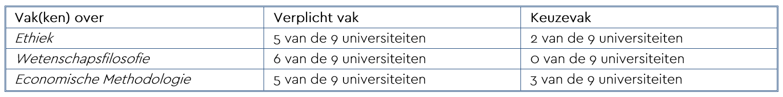 De abstracte, kwantitatieve, monistische denkwijze die studenten meekrijgen wordt maar al te zelden gecontrasteerd door een uitnodiging om te bekritiseren, te bevragen en op zoek te gaan naar alternatieve ideeën. In de meeste opleidingen zit wel een vak over wetenschapsfilosofie of economische methodologie. Maar de vragen die zo'n vak opwerpt worden maar al te zelden geadresseerd of zelfs erkend in alle andere vakken.