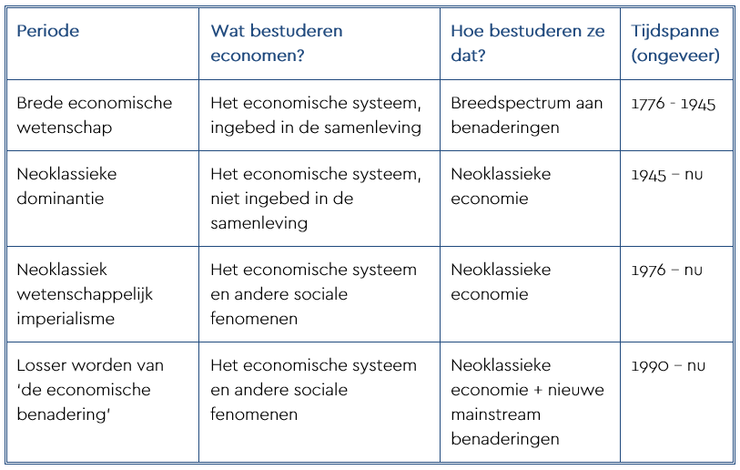 Tabel 1: volgordelijkheid van ontwikkelingen binnen de economische wetenschap